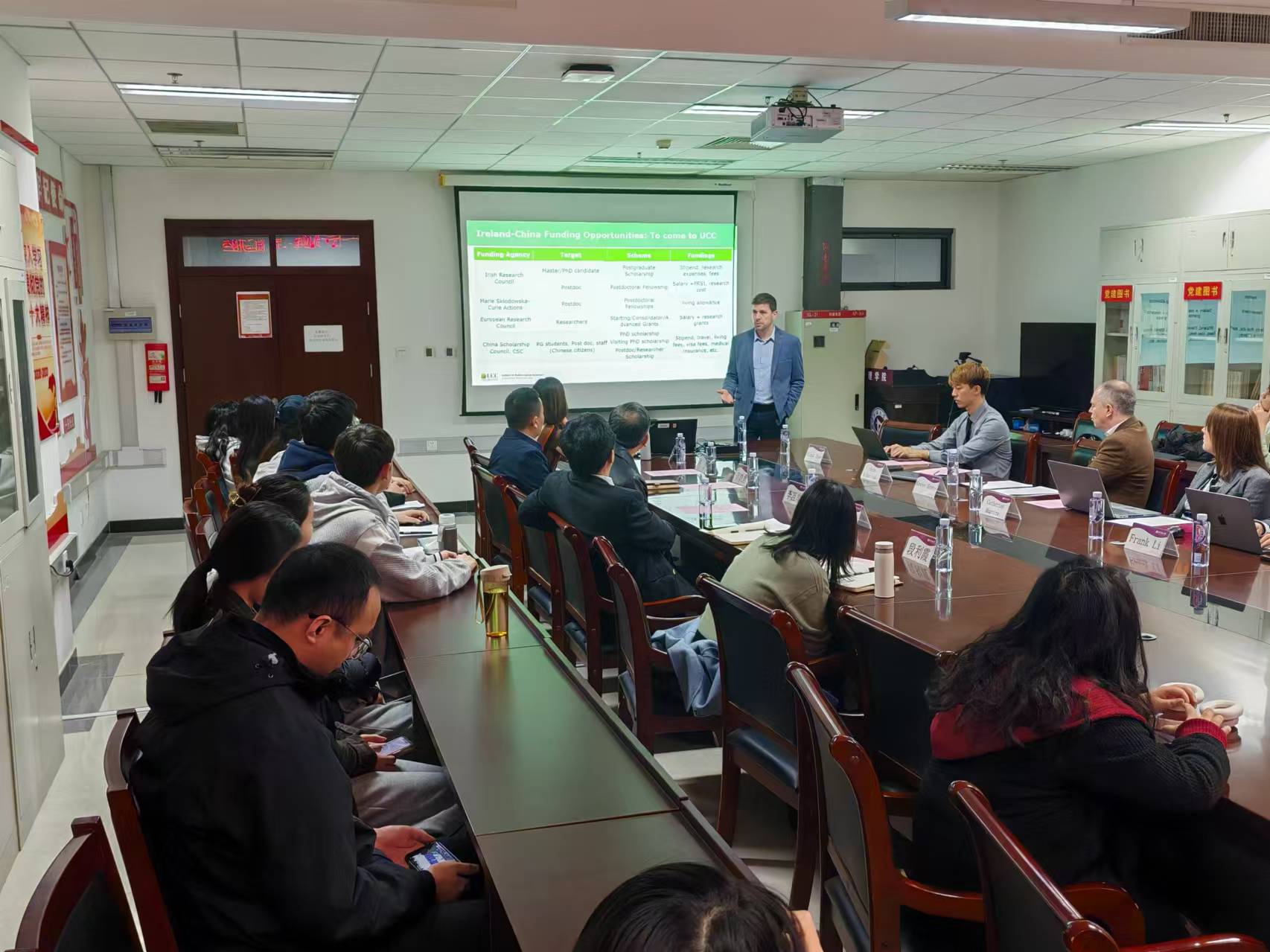 根据学校本科教育教学工作会部署安排,推进学院“三个1”教育国际化建设工作,在此会晤期间,科克大学代表团来访米乐官网米乐mile(中国区)官方网站,开展了学术交流活动,就相关专业的硕士、博士联合培养等项目进行了深入的交流与讨论。统计学系主任Eric Wolsztynski通过讲座形式,为米乐mile(中国区)官方网站师生详细介绍了该校数学和统计学等专业的学科发展及交叉学科建设特色,并分享了两国在研究生交流和教师访学方面的资助项目情况。