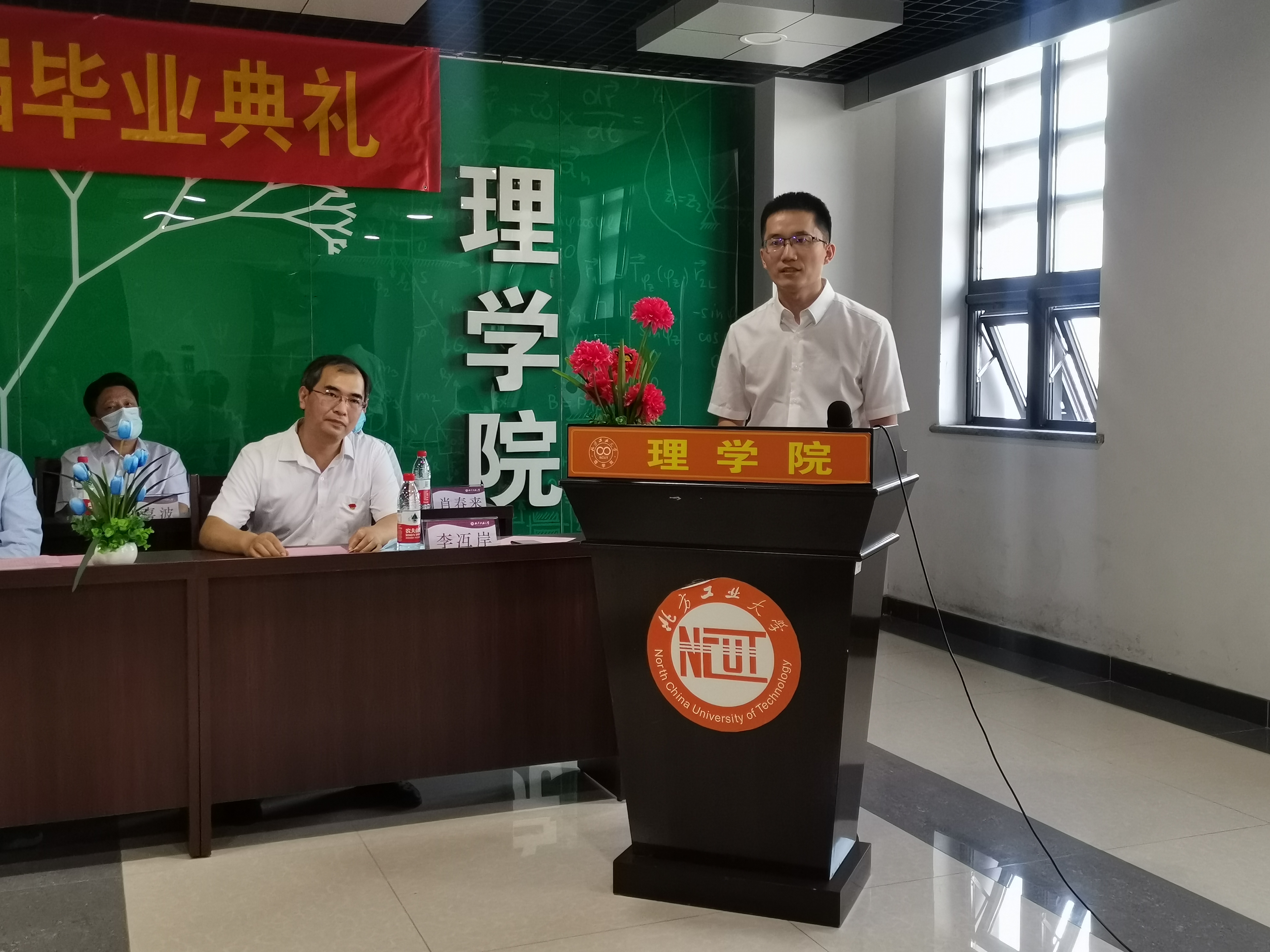 毕业生代表赵苑如同学谈到了四年来在北方工大学习生活的点滴,并代表学院全体毕业生向老师们表示衷心的感谢,对未来她也提到:“今天,我们即将从这里扬帆起航,去编织各自美丽花环似的梦。或继续读研,或出国深造,或走向理想的工作岗位,但是无论我们身在何方,我深信,我们一定会无愧于老师的辛勤培养,无愧于母校的期盼,在各自的岗位上兢兢业业,艰苦奋斗、努力拼搏,创造出属于自己的一片蔚蓝晴空!