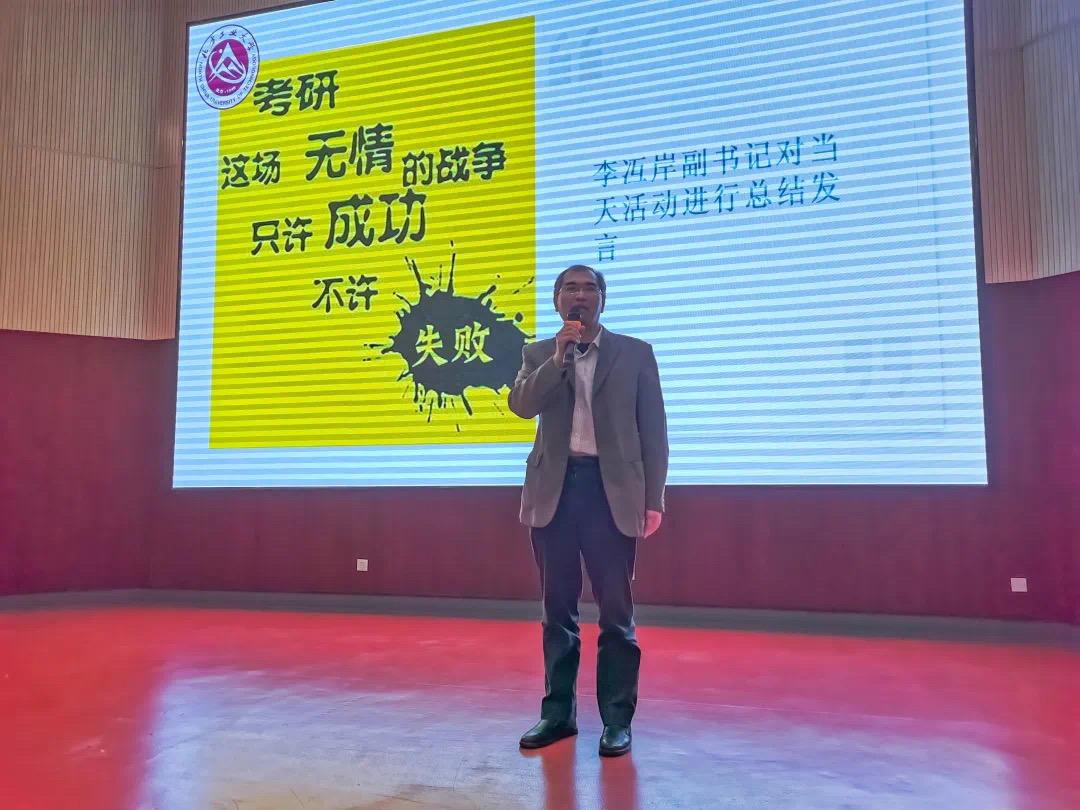 学院党委副书记李冱岸老师对本次活动进行了总结。他表示考研并不是一件轻松的事,同学们在面临抉择时要根据自身的实际情况多方考量,最终确定合适自己的考研方向并为之努力奋斗,就一定能取得满意的成果。
