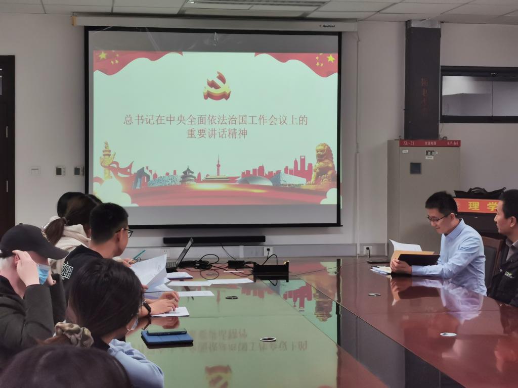 接着,各支部师生党员就学习感受进行了深入交流。大家一致认为,习近平总书记重要讲话高屋建瓴、视野宏阔、内涵丰富、思想深刻,是指导新时代全面依法治国的纲领性文献,要全面准确领会习近平法治思想,牢牢把握全面依法治国政治方向,在工作、学习和生活中重视法治、厉行法治,坚决遵守《宪法》,做遵纪守法的北方工大人。