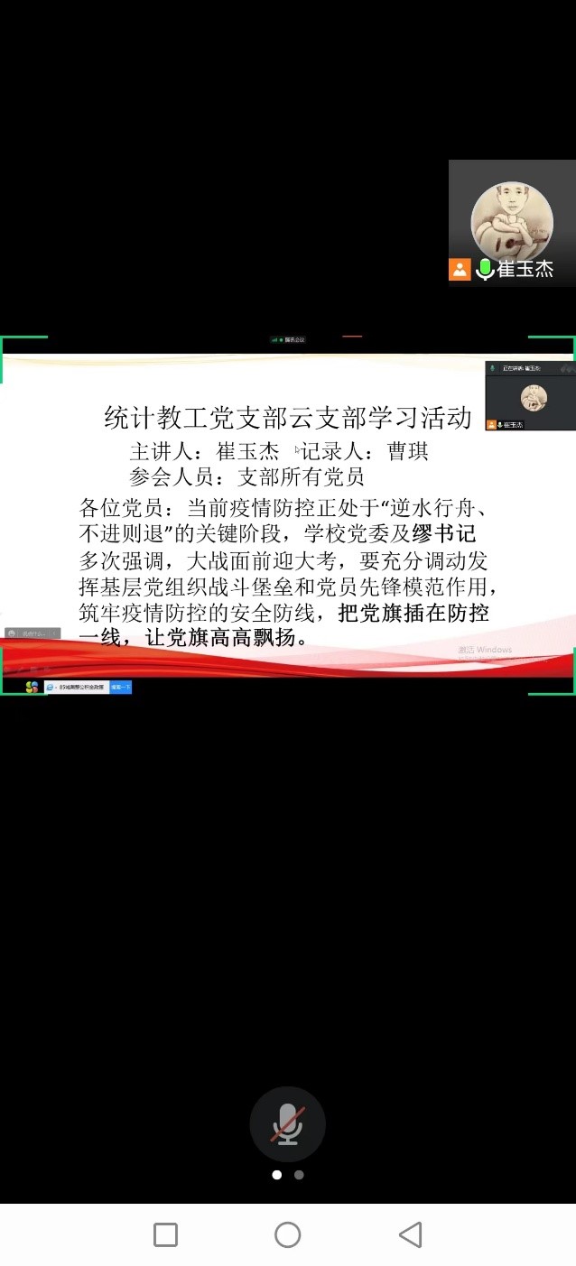 统计教工支部抗疫“云会议”
