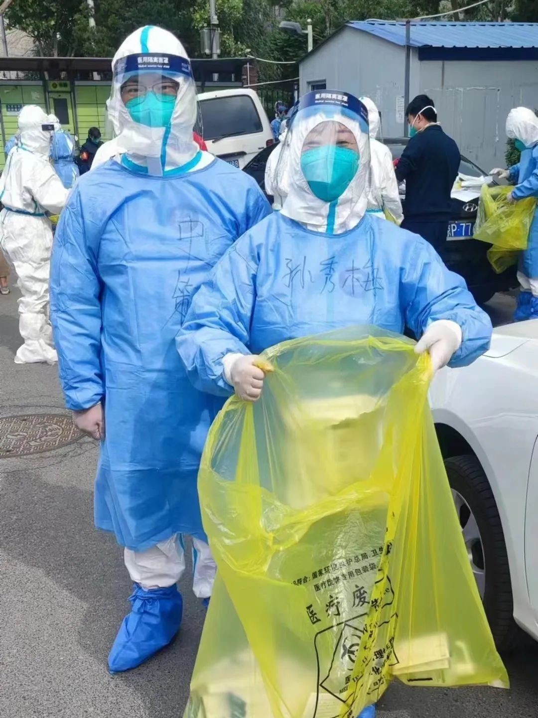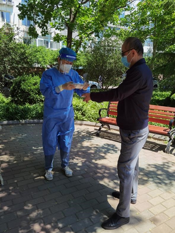 本科生积极分子史策和她母亲积极投身丰台双林苑社区5个单元楼的家户核酸检测