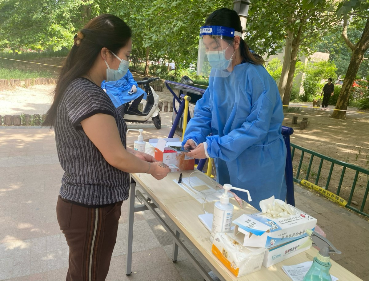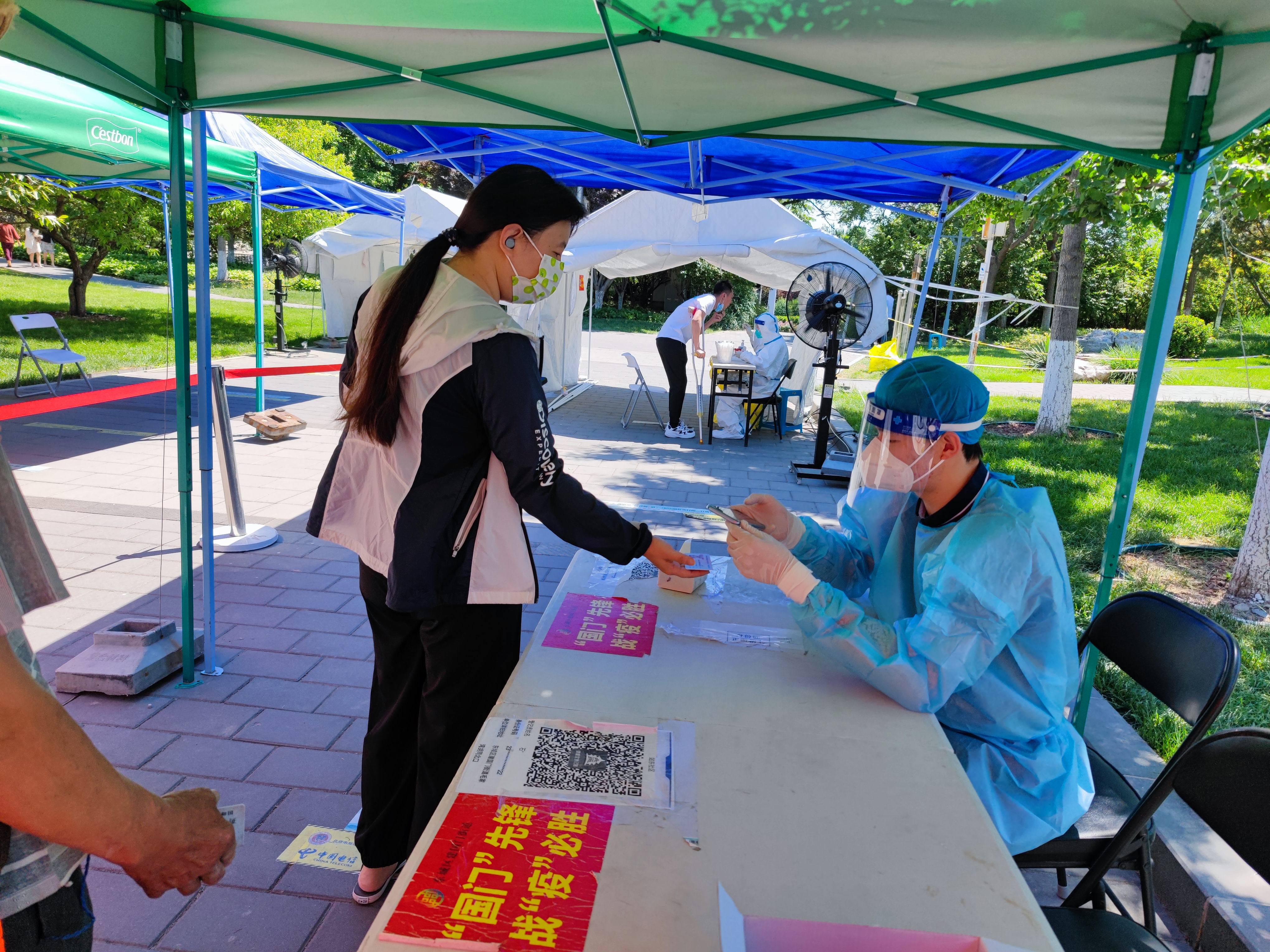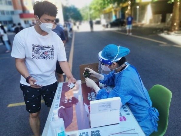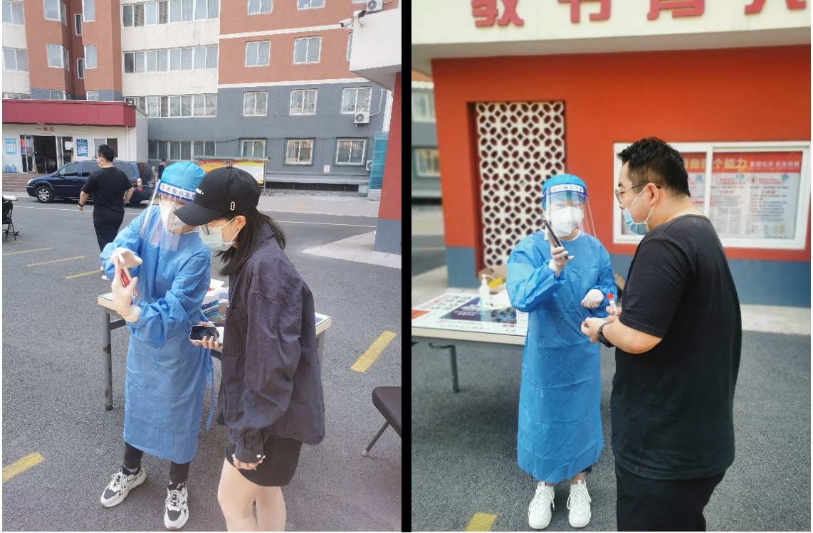 本科学生党员简斯佳、研究生胡国华在北京投身社区核酸检测志愿服务