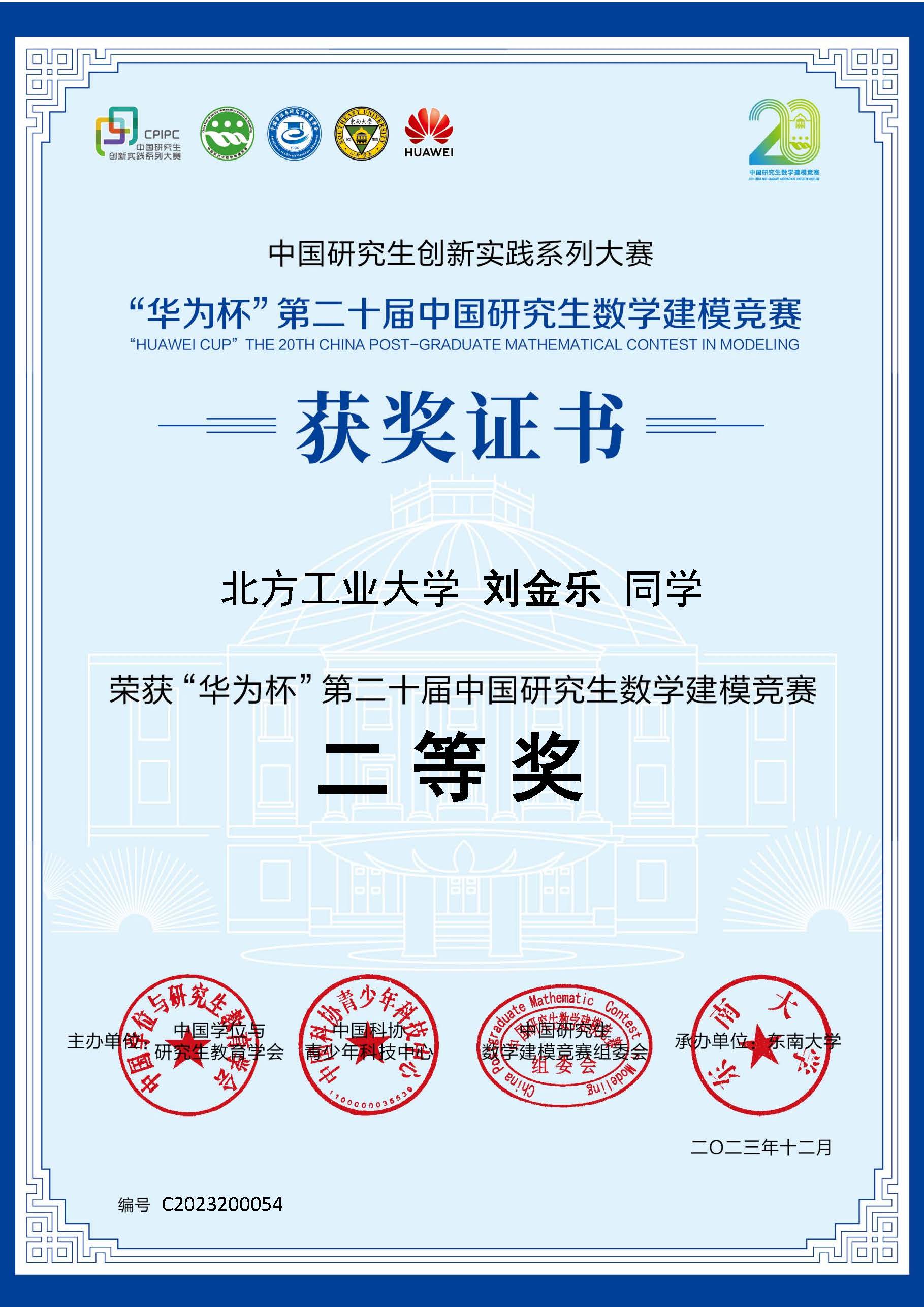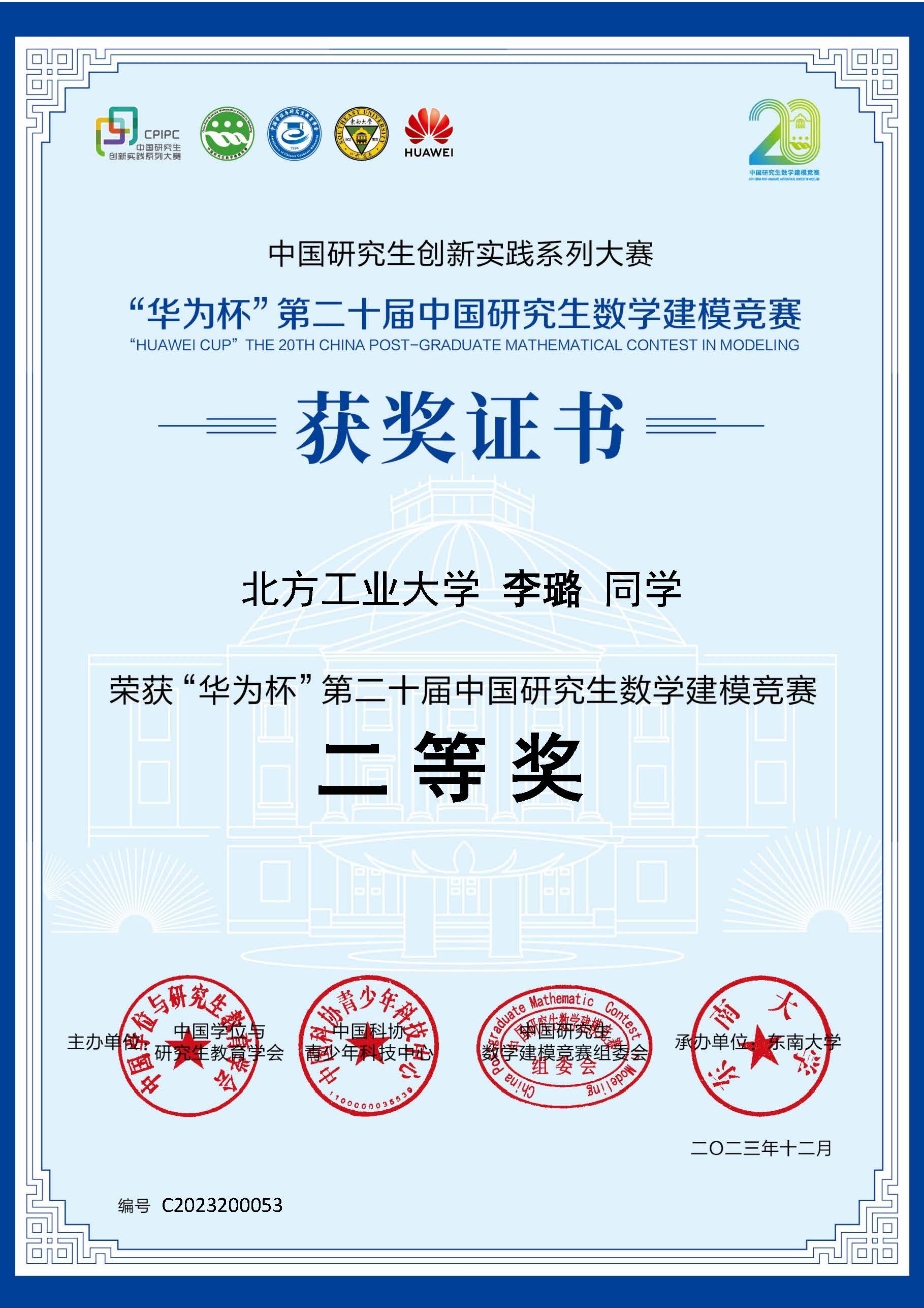 12月15日至12月17日,东南大学承办的“华为杯”第二十届中国研究生数学建模竞赛颁奖典礼暨二十周年庆祝大会在南京举行,米乐官网研究生在比赛中成绩优异,共获得国家二等奖1项,国家三等奖5项。