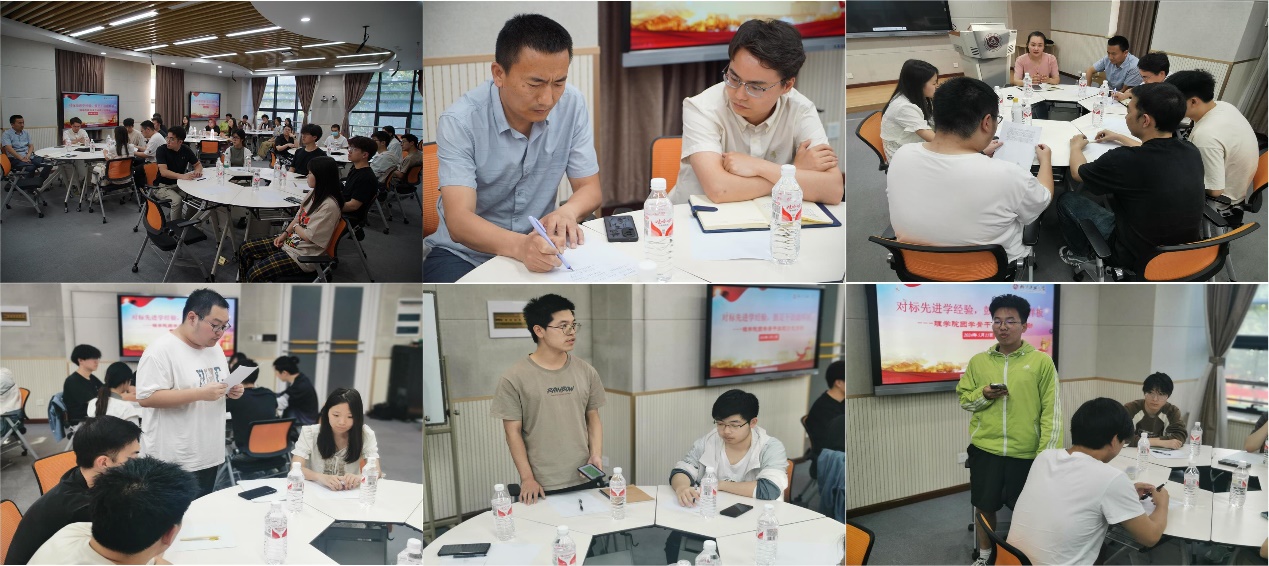 各位团学骨干发言后,各团支部五人结为一组展开了学习讨论,并选派各组代表轮流发言。刘东润就进一步强化学院基层团支部设置和运行机制给出了自己的思考;信23-3团支部书记赵鹏博就如何发挥好团支部作用介绍了本组的讨论结果;学研部负责人张豪天就团学工作如何在学风建设中发挥更大效能对本组的讨论结果进行了分享。