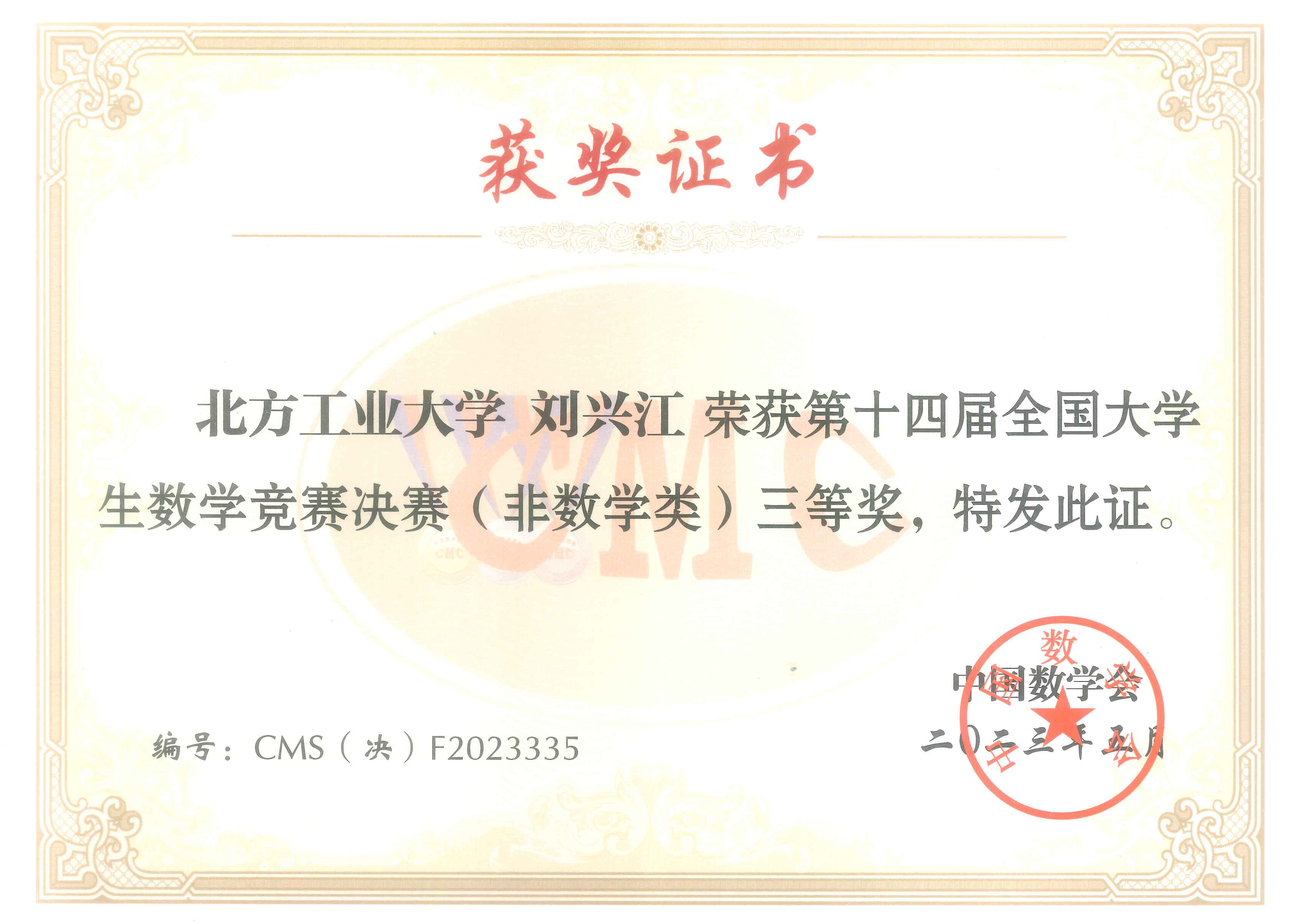 5月26日至28日,第十四届全国大学生数学竞赛决赛在广东工业大学成功举行。米乐官网电气与控制工程学院刘兴江同学作为北京赛区参赛代表之一参加了此次竞赛,并最终取得了非数学类全国三等奖的优异成绩。这是自全国大学生数学竞赛举办以来米乐官网学生首次入围决赛并成功获奖。
