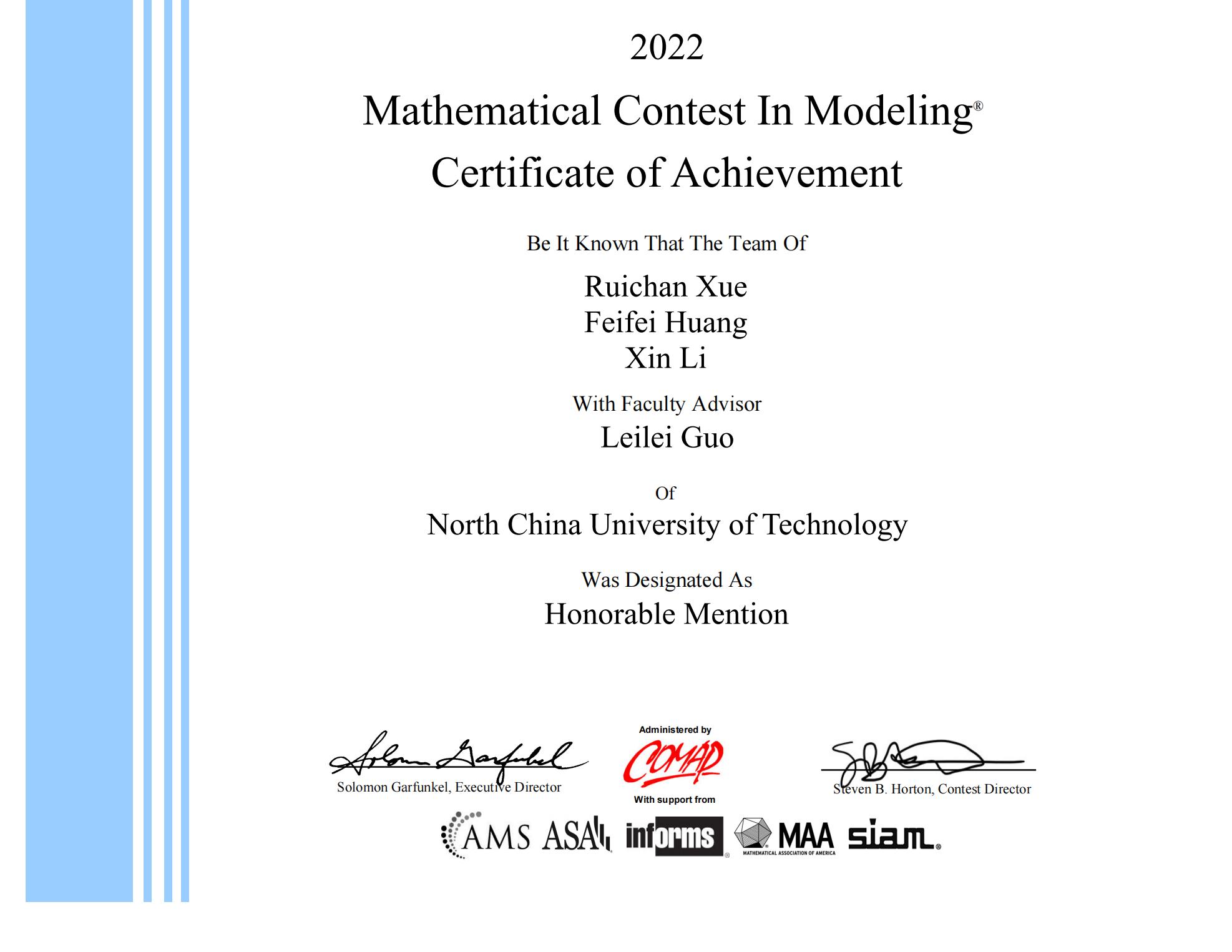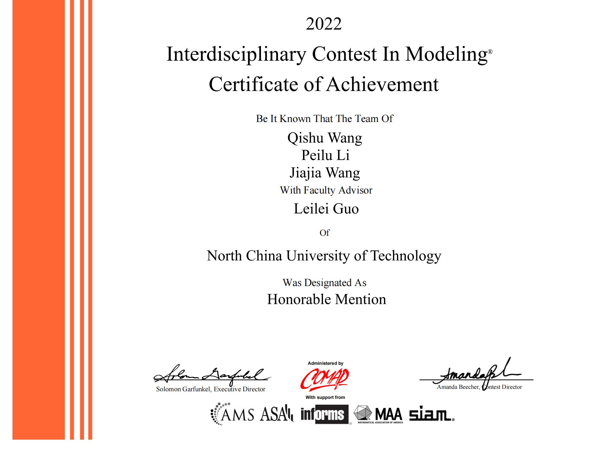 近日,由美国数学及其应用联合会主办的2022年国际大学生数学建模竞赛成绩揭晓。米乐官网有14个代表队参赛,获得二等奖(Honorable Mention)5项(15人)。