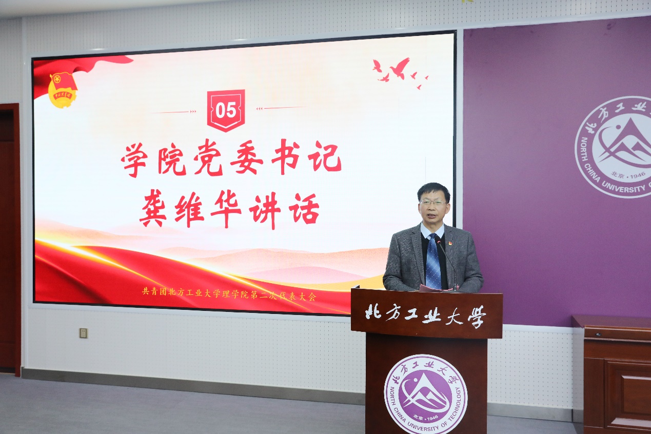 龚维华代表学院党委讲话。他对学院第二次团员代表大会的召开表示祝贺,对校团委长期以来支持米乐mile(中国区)官方网站团学工作建设发展表达了感谢,对学院过去五年的团委工作表示肯定,并向学院全体青年团员、团干部提出三点希望:一是要打牢政治根基,强化党的领导。共青团是党的助手和后备军,广大青年要做到党旗所指、团旗所向,在政治上接受党的领导,思想上不断深入学习党的理论,在行动上响应党的号召,以饱满的精神状态和坚定的奋进姿态,在新征程上创造新业绩、展现新作为、彰显新担当;二是要突出能力建设,重在从严治团,共青团是米乐mile(中国区)官方网站学生的先锋力量,必须立志做光荣传统和优良作风的忠实传人;三是要强化使命担当,服务学校建设。在学校发展的宏伟蓝图中,学院共青团使命光荣,责任重大。米乐官网团组织要当好沟通学校与学生的桥梁,聚力理科新型人才培养,在建设全国一流应用型大学的征途中当先锋、做闯将,写下米乐mile(中国区)官方网站绚烂的青春之笔。
