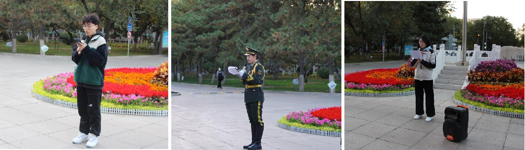 鲜艳的五星红旗迎着晨曦冉冉升起,全体师生凝视着国旗,肃穆庄严。升旗仪式后,学院优秀学生代表李鑫分享了自己学习的经验;吴鸿宇分享了理院团学的奉献精神和国旗班的使命感;新生代表李雨瞳讲解了当代青年应承担的使命和肩负的责任。